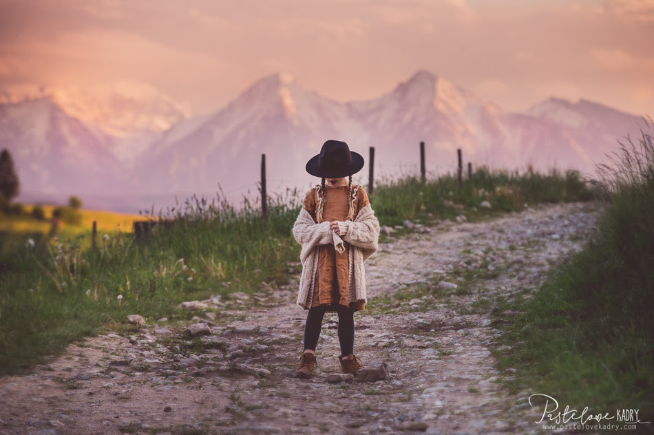 Bardzo lubimy plener w takiej scenerii. Pożółkłe trawy, dodatki w stylu boho,a w tle górskie szczyty...